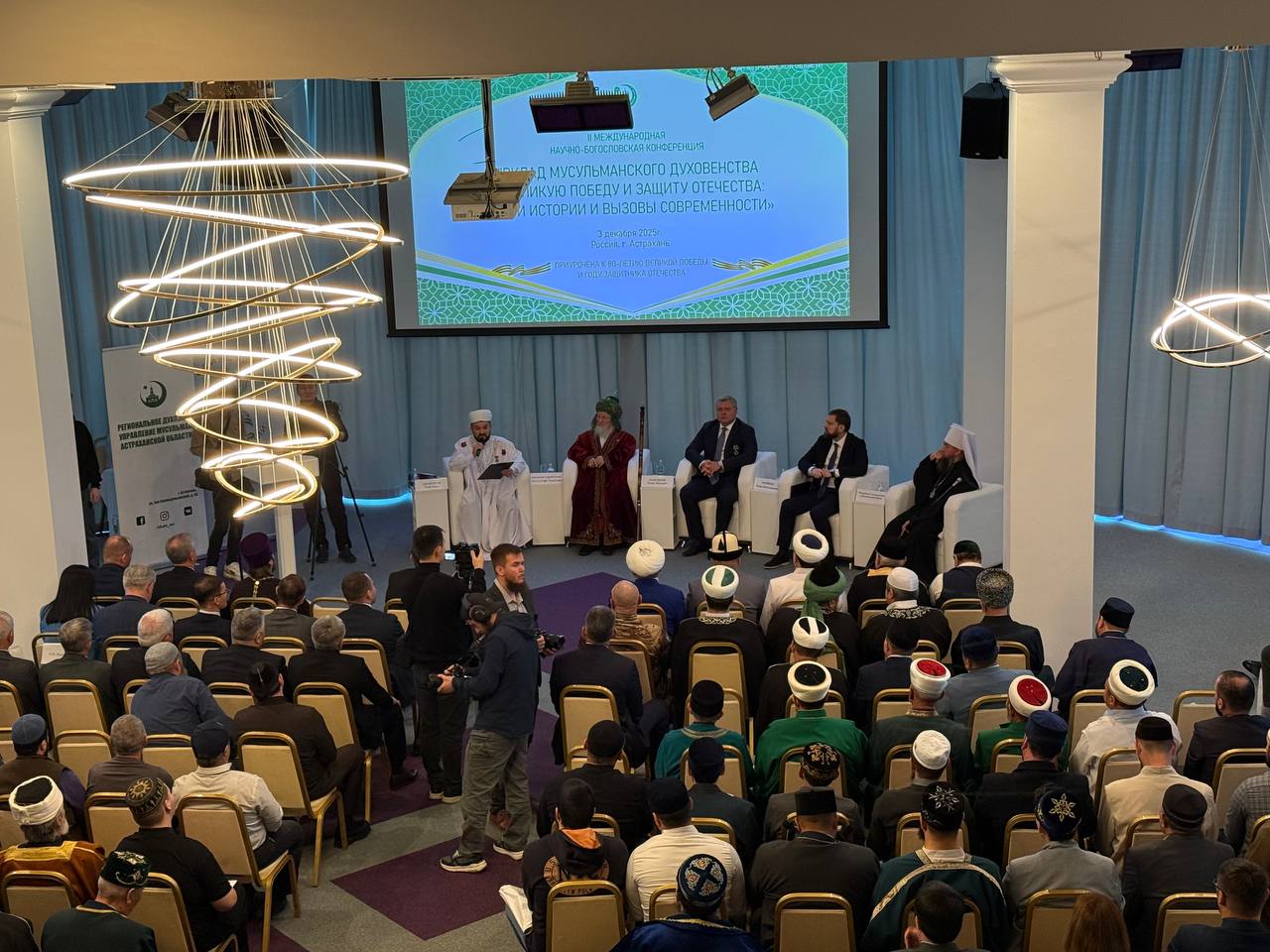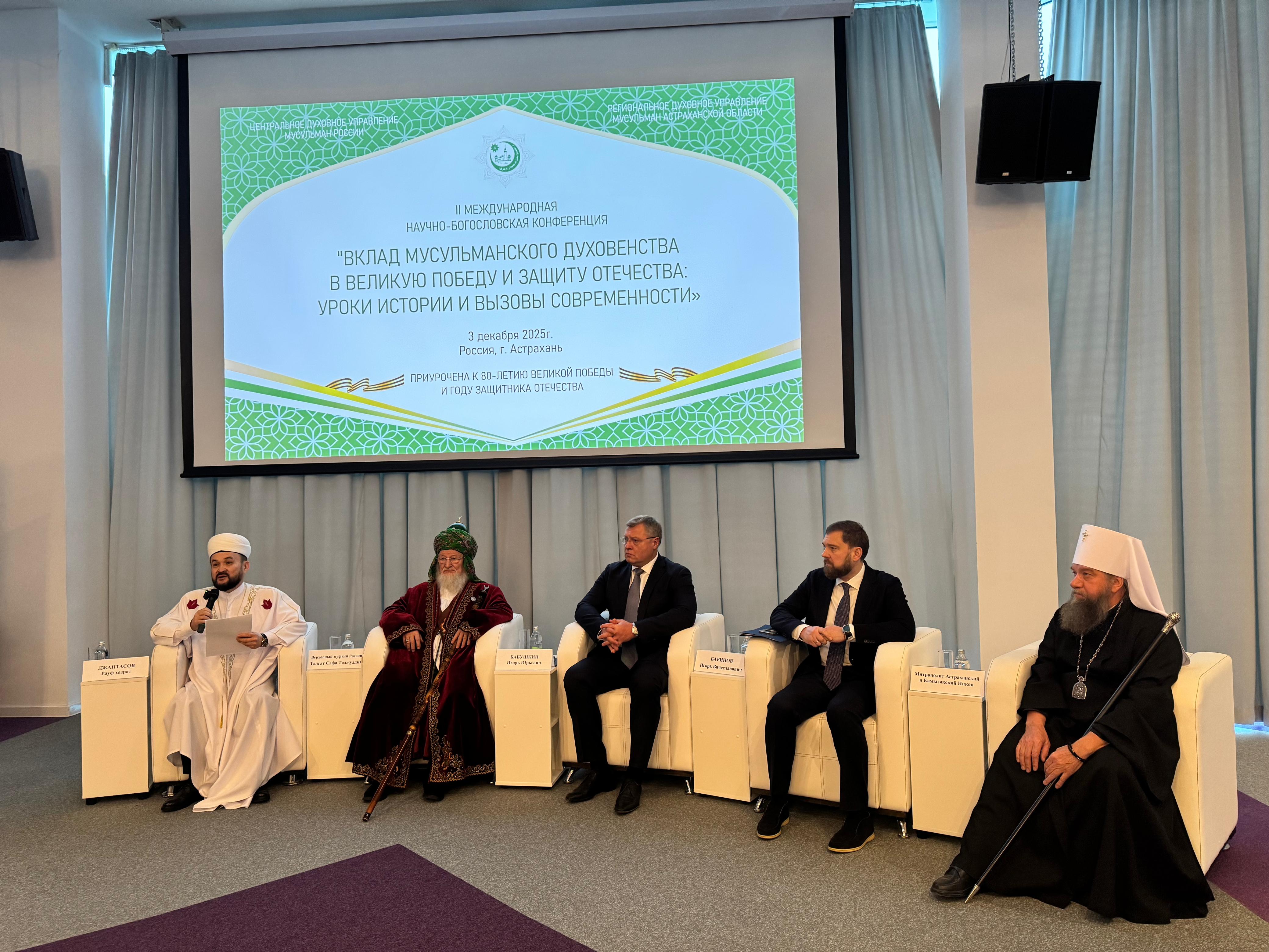 В г. Астрахань 3 декабря 2025 года состоялась II Международная научно-богословская конференция «Вклад мусульманского духовенства в Великую Победу и защиту Отечества: уроки истории и вызовы современности». Организатор мероприятия выступили РДУМ Астраханской области, при поддержке Администрации Губернатора Астраханской области. На конференцию прибыли руководители религиозных организаций России и ближнего зарубежья, представители научного сообщества, министерств и ведомств.