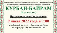 КУРБАН - БАЙРАМ состоится 9 июля 2022г. в 7:00