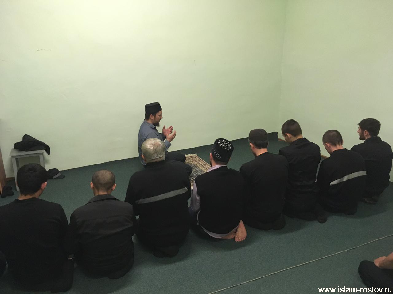 Завершилась встреча после обеденной коллективной молитвой Аср. В заключение встречи руководство колонии и осужденные мусульмане искренне поблагодарили представителей Центрального Духовного Управления мусульман Ростовской области за душевную беседу и оказанное внимание.