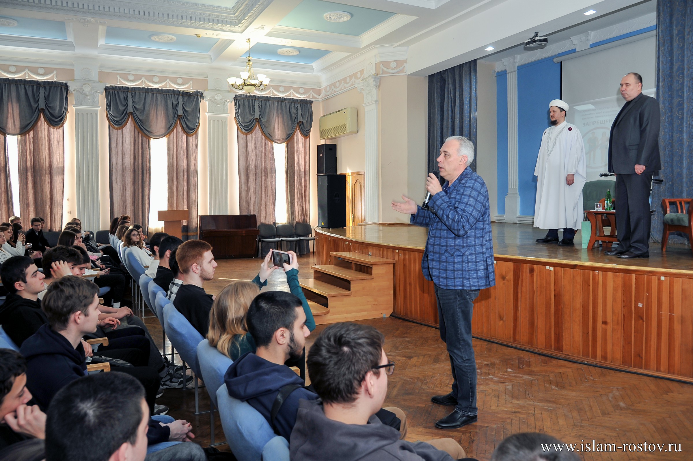 В своём выступлении глава духовного управления мусульман региона затронул ряд важных тем, в частности он рассказал об истории распространения Ислама на Донской земле, важности получения знаний и  примерном отношении к учебе, уважении к старшим и учителям, важности сохранения и укрепления мира и согласия в обществе, профилактики псевдорелигиозного экстремизма среди молодежи, соблюдении здорового образа жизни и занятий спортом.