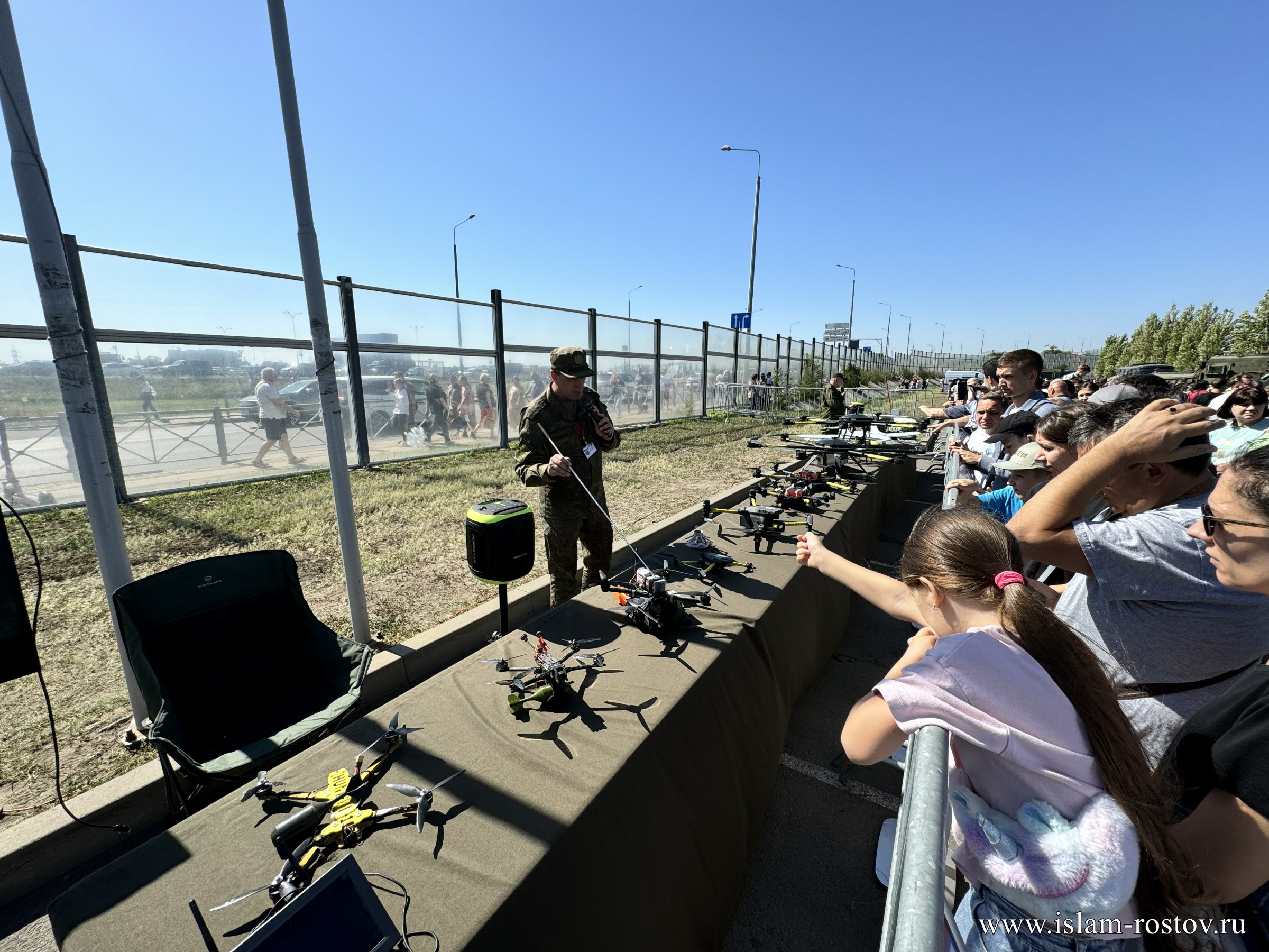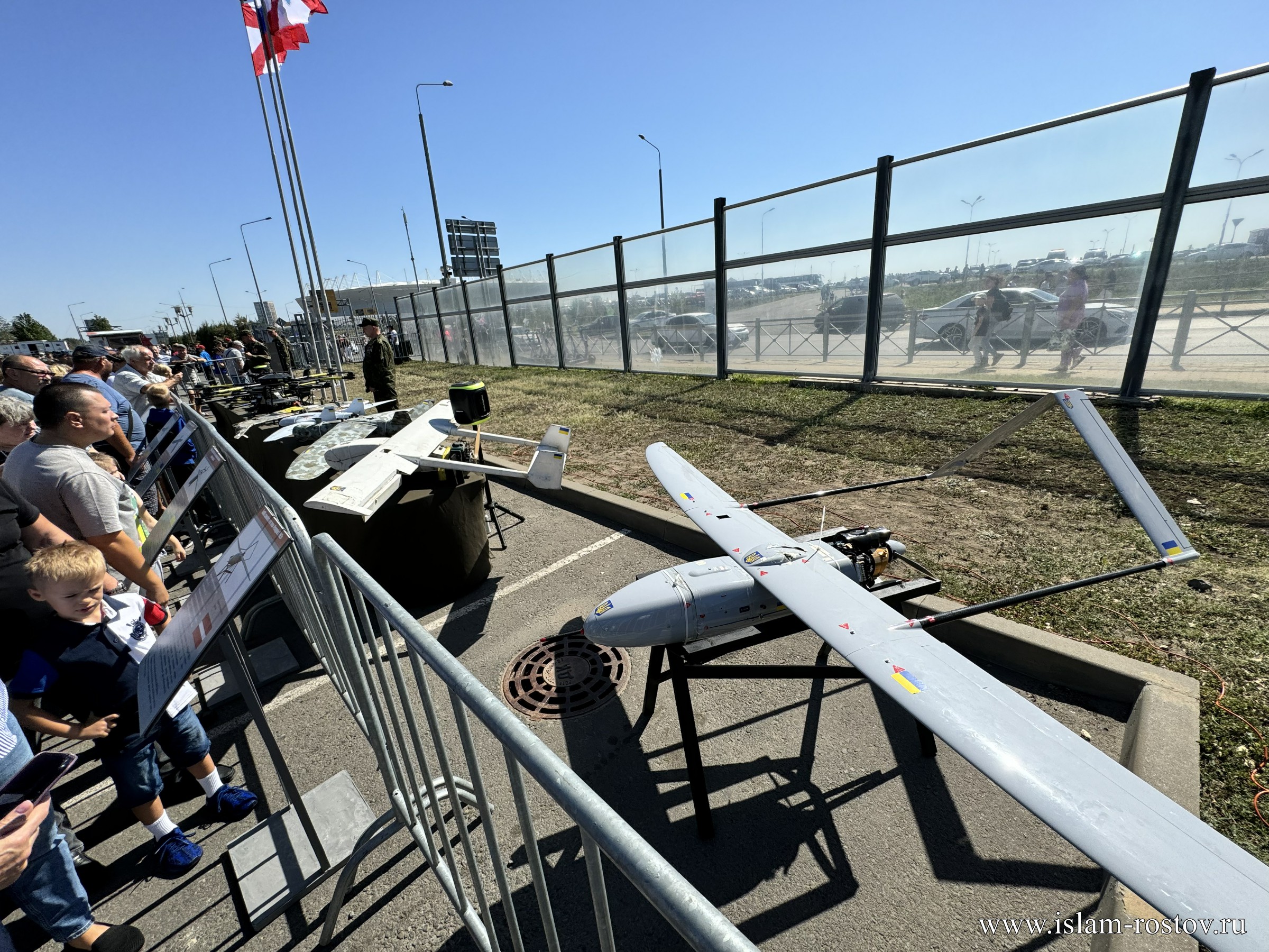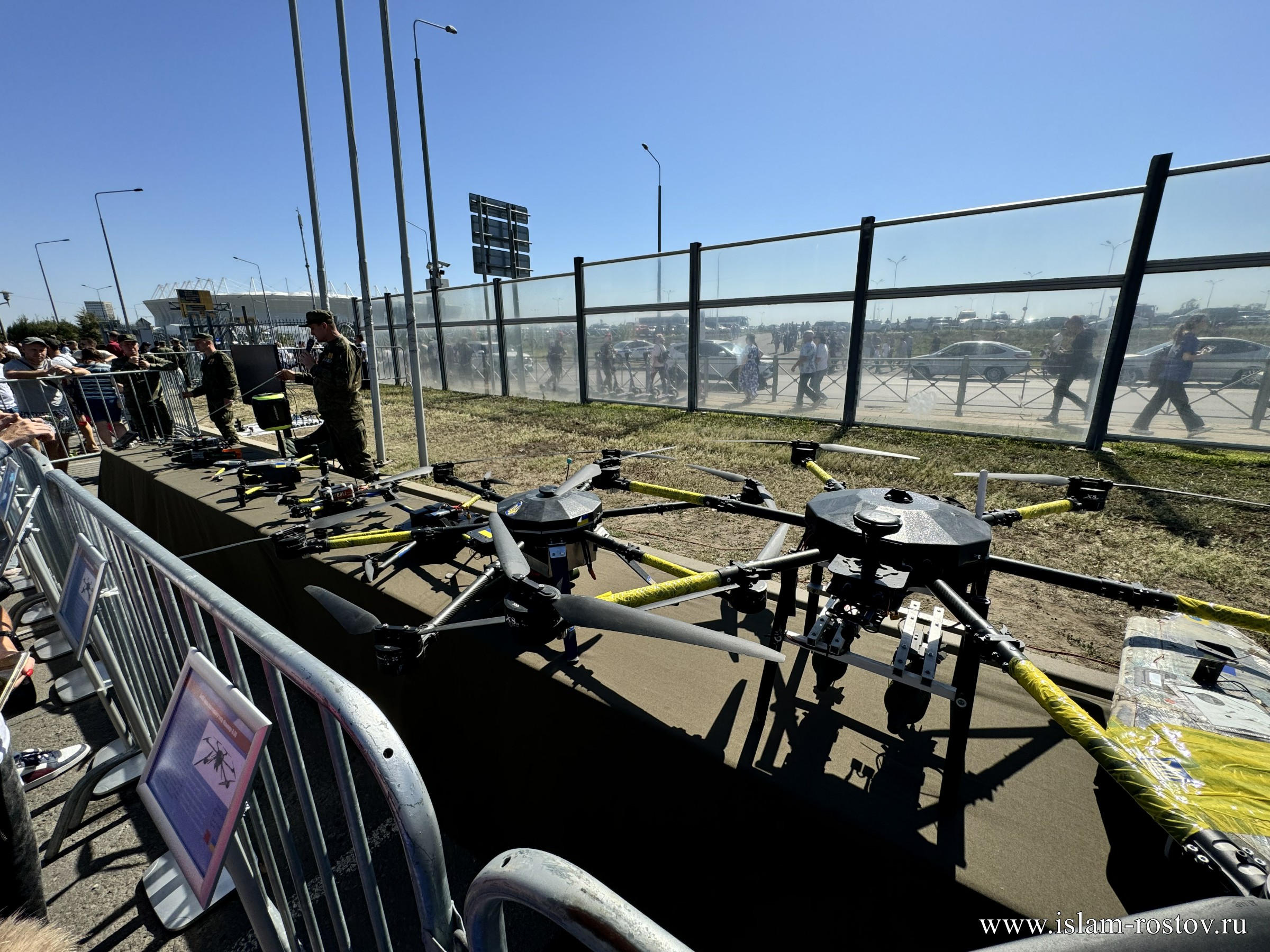 На отдельной площадке специалисты службы беспилотной летательной авиации ЮВО демонстрируют специфику применения БПЛА в зоне СВО.