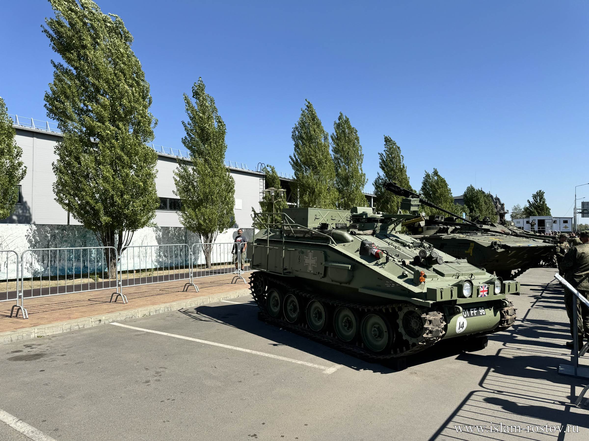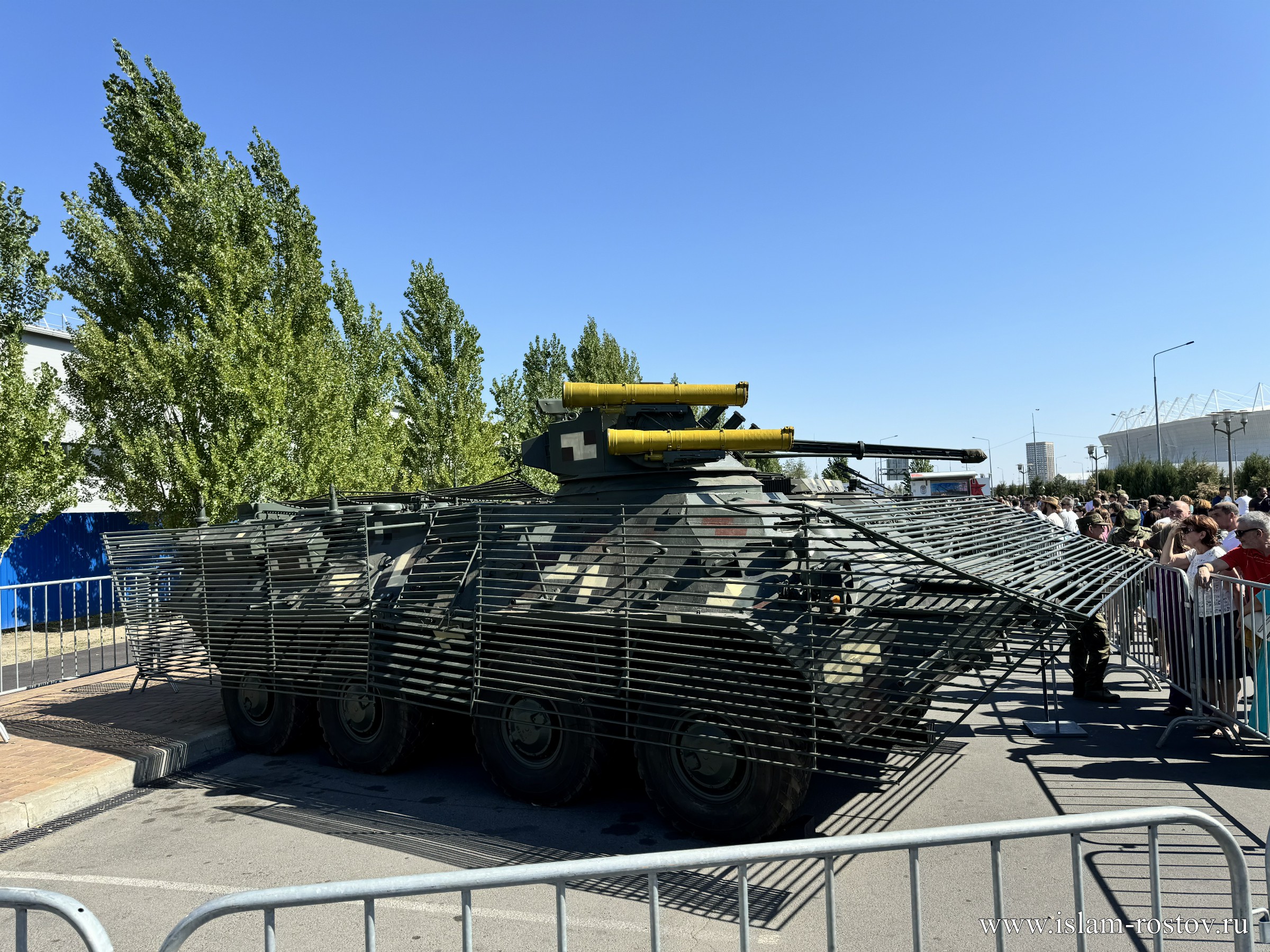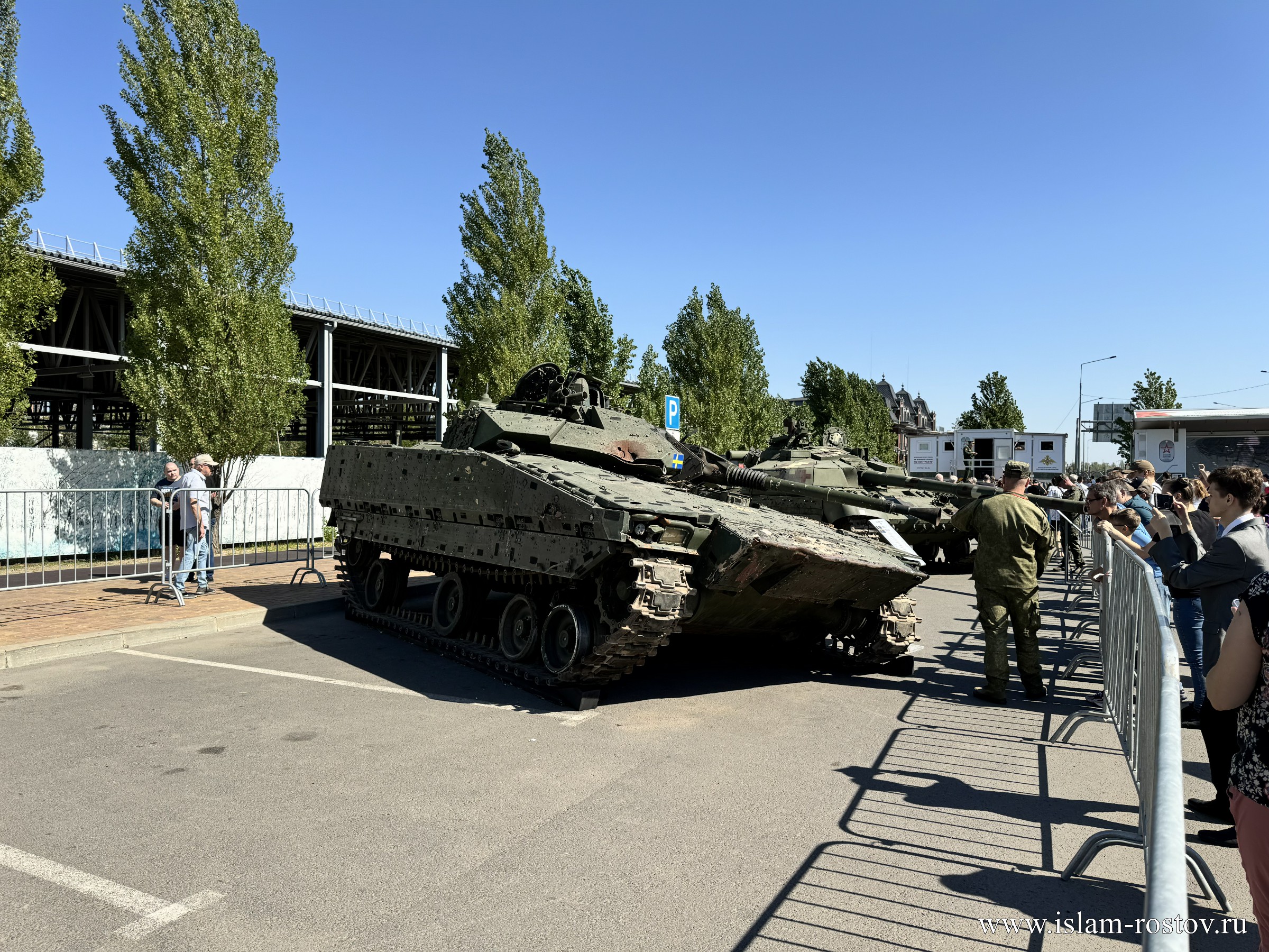 На территории парка «Левобережный» в г. Ростове-на-Дону, Штаб командования войсками Южного военного округа представил трофейную военную технику, захваченную российскими военнослужащими в ходе проведения специальной военной операции в Донецкой Народной Республике. На выставке можно увидеть иностранные бронетранспортеры, бронеавтомобиль, танк, боевую машину пехоты, а также трофейные разведывательные и ударные беспилотные летательные аппараты, стрелковое и противотанковое вооружение противника.