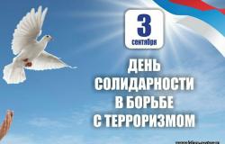 День солидарности в борьбе с терроризмом приурочен к трагическим событиям, произошедшим 20 лет назад, 1-3 сентября 2004 года, в городе Беслане (Северная Осетия), когда в результате беспрецедентного по своей жестокости террористического акта погибли более 300 человек, в основном женщины и дети.