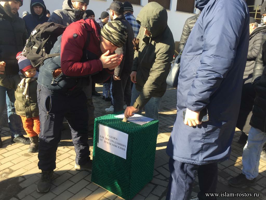 По инициативе Центрального Духовного Управления мусульман Ростовской области на джума намазе был объявлен сбор средств для оказания материальной помощи пострадавшим от серии мощных землетрясений. Усилиями прихожан соборной мечети г. Ростова-на-Дону, после пятничной молитвы удалось собрать 378 550руб. Собранные средства были перечислены на счёт РОО Турецко-Месхетинского культурного центра "Ахыска", который передаст средства уполномоченным органам Турции для приобретения медикаментов и средств первой необходимости, для оказания помощи пострадавшим от землетрясений.