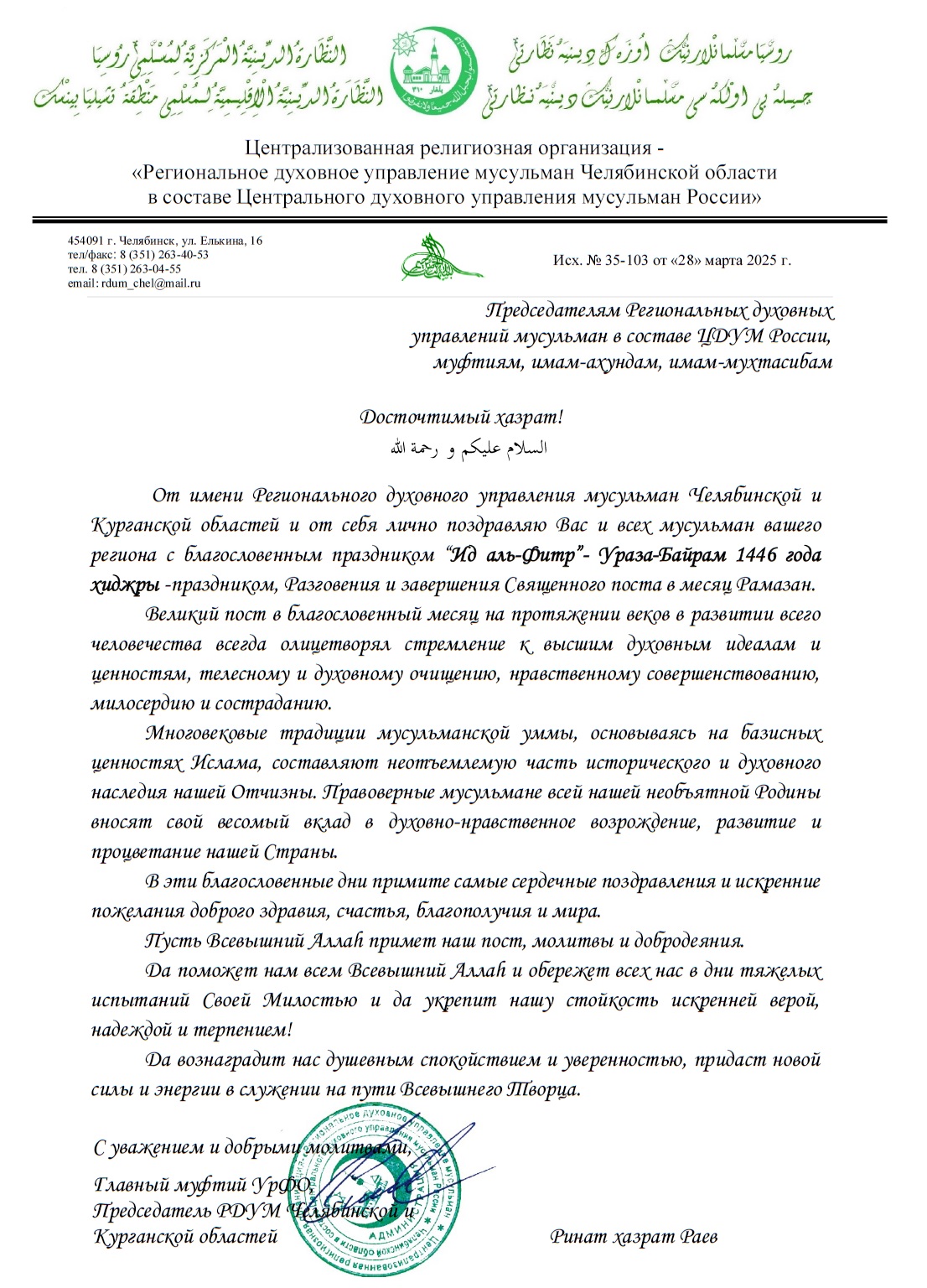 С благословенным праздником «Ураза-Байрам» (Ид-аль-Фитр) 2025!