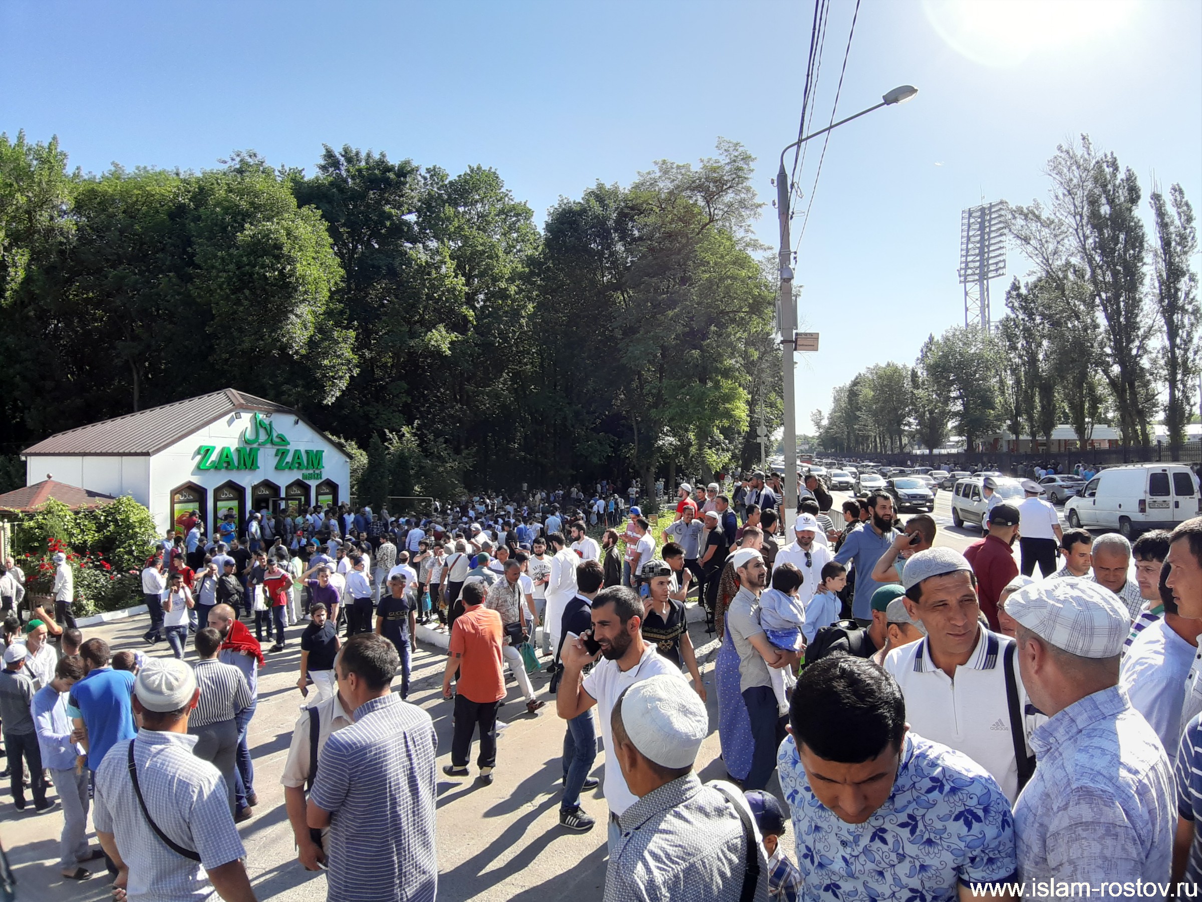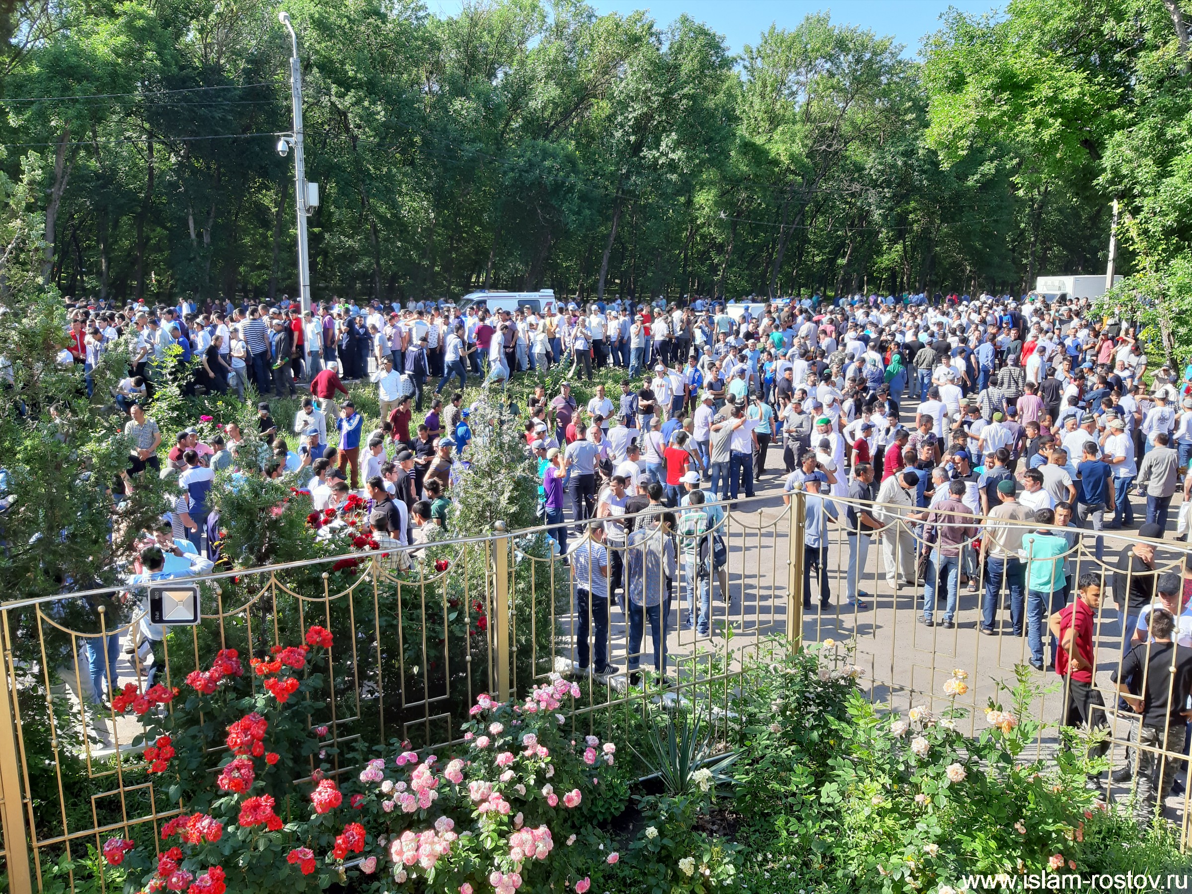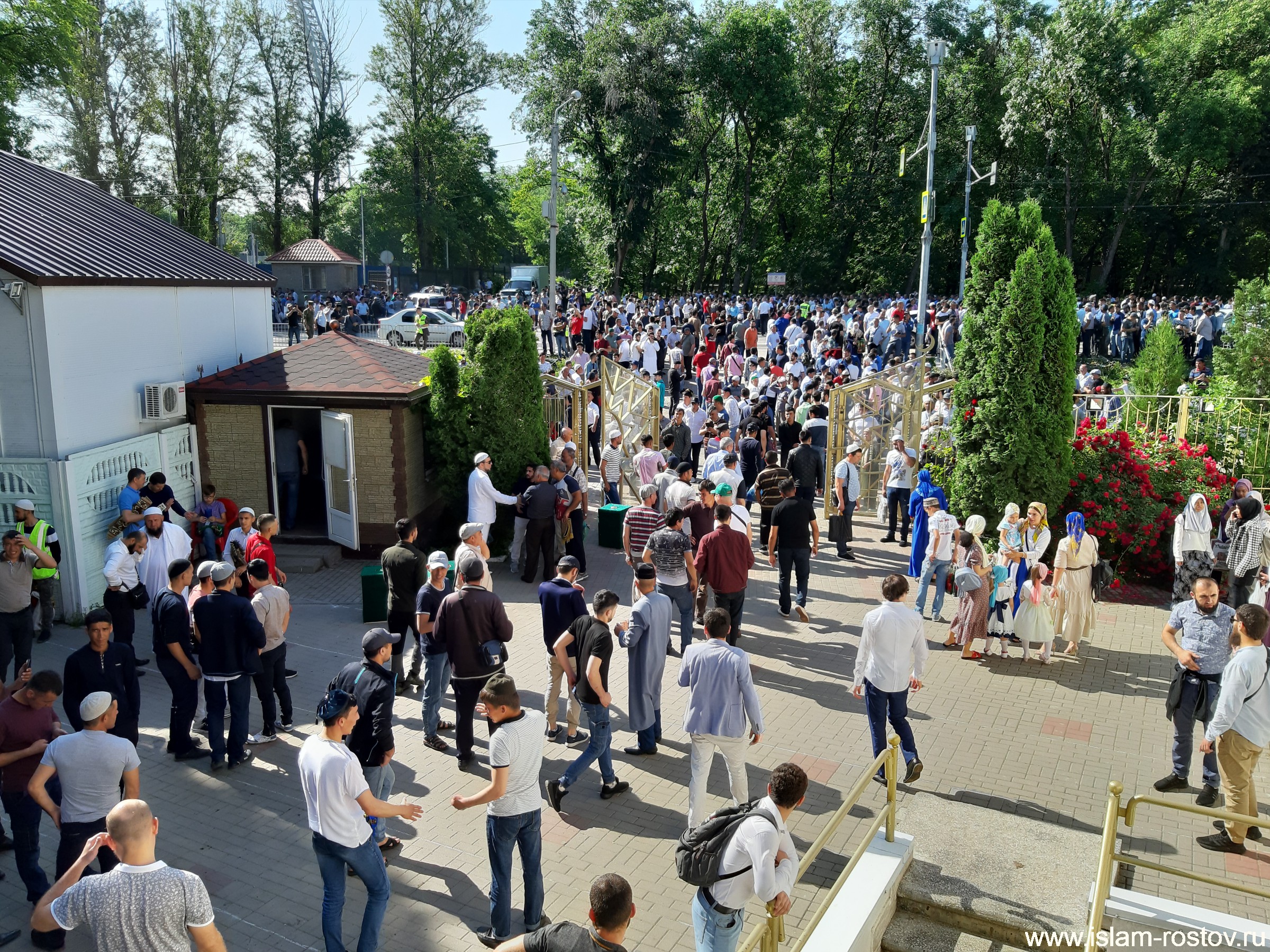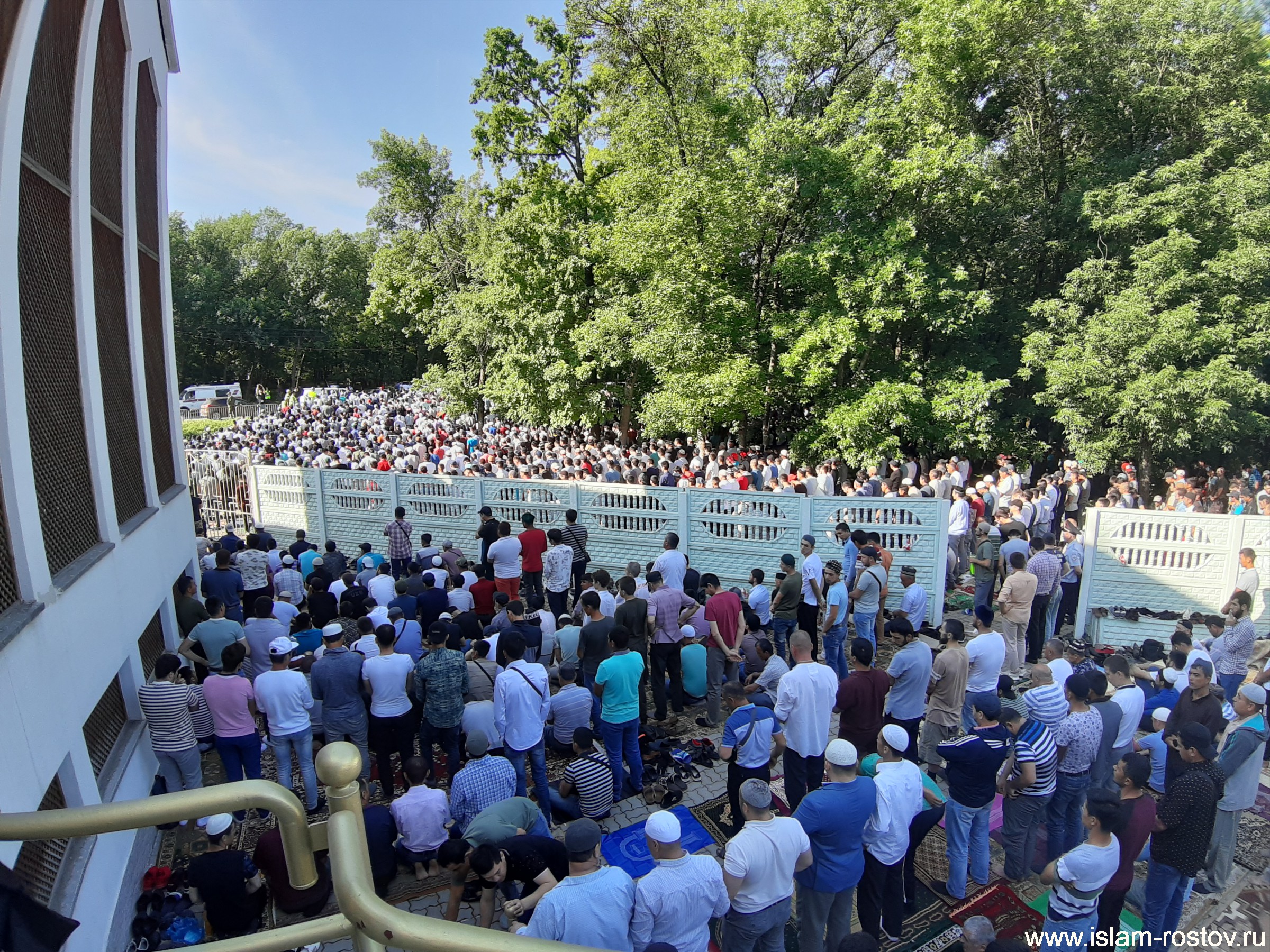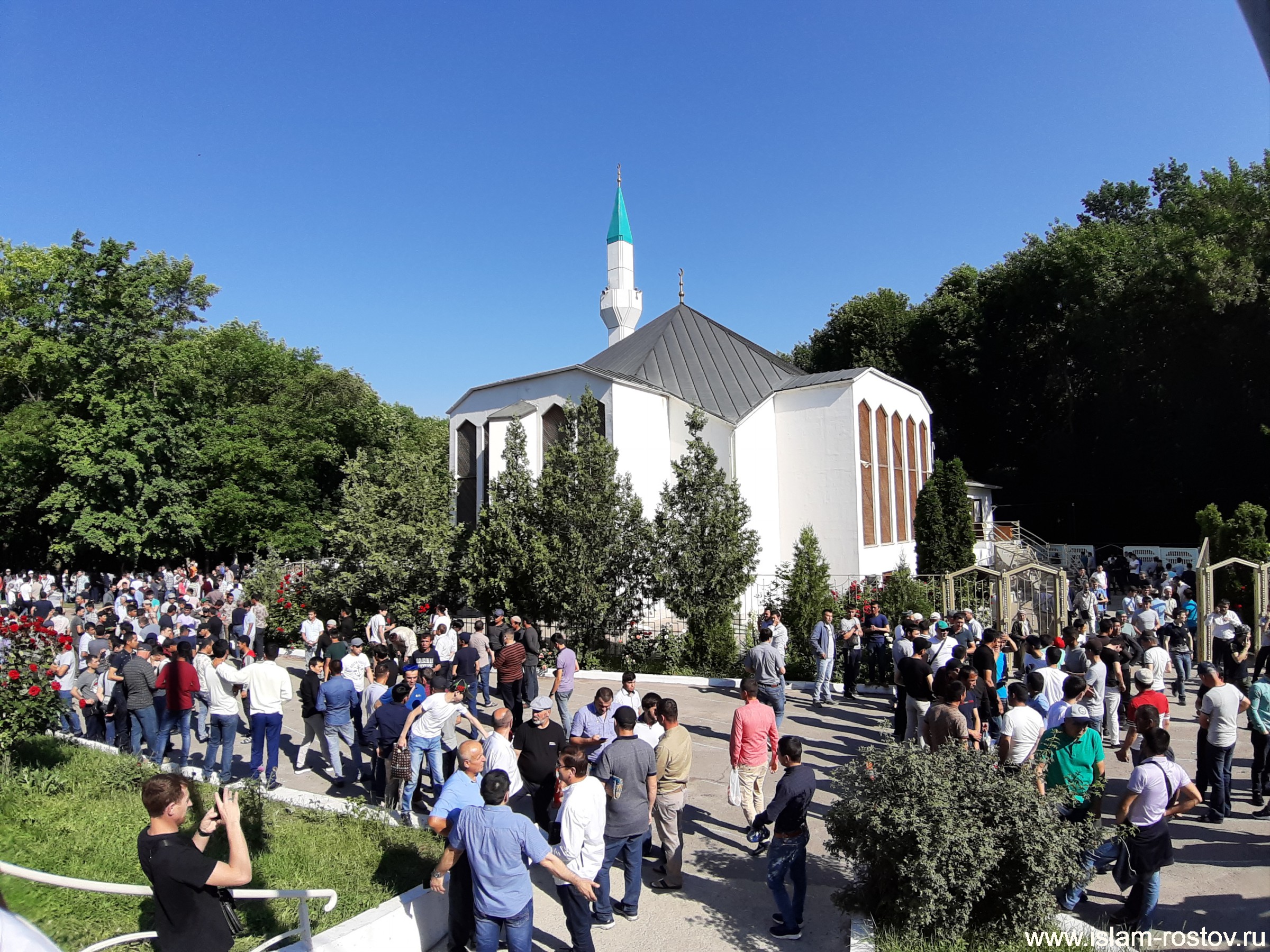 4 июня 2019 года, мусульмане всего мира отметили один из великих праздников – Ураза-байрам- (Ид-аль Фитр). Он знаменует завершение поста священного месяца Рамазан. Это время принято отмечать добрыми делами, проявляя заботу о ближних и сострадание к нуждающимся. В честь праздника во всех мечетях и молитвенных домах Ростовской области были прочитаны молитвы и проповеди. В г. Ростове-на-Дону основные торжества прошли в Соборной мечети на ул. Фурмановской 131, где более 15000 прихожан совершили праздничное Богослужение.