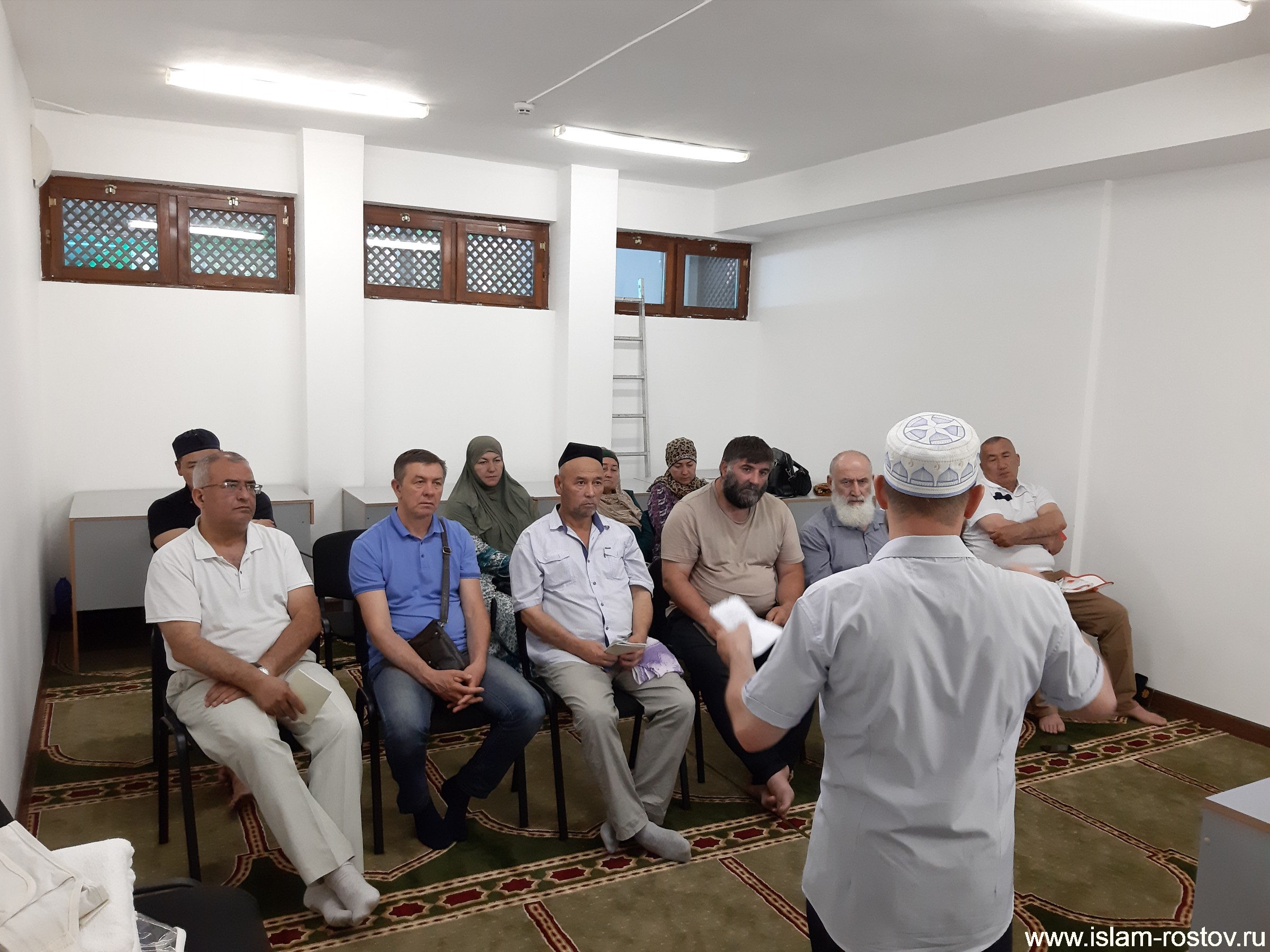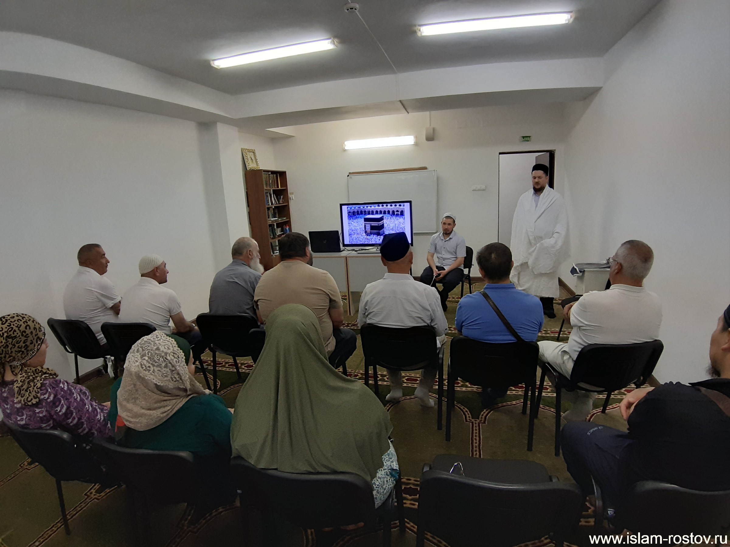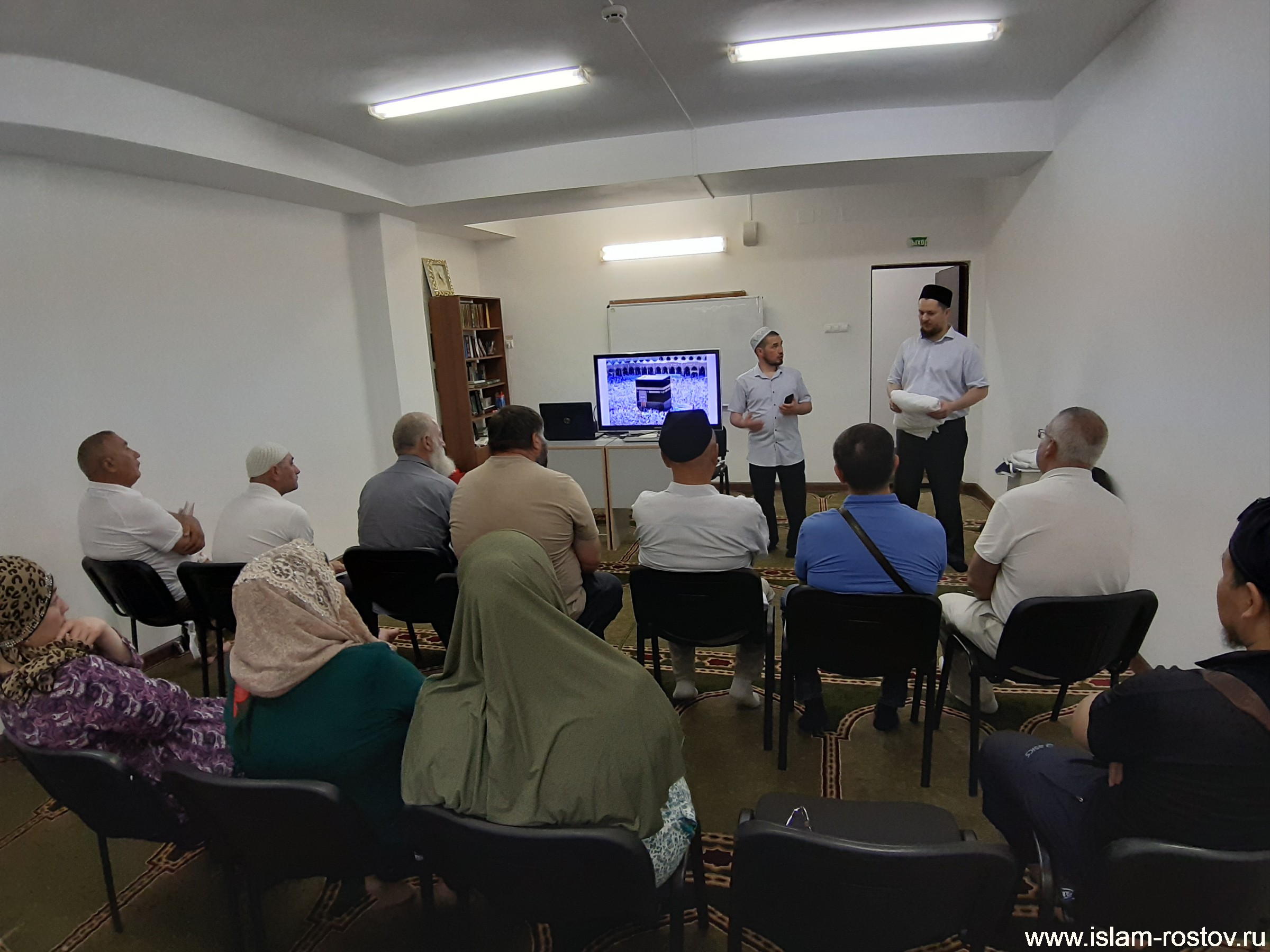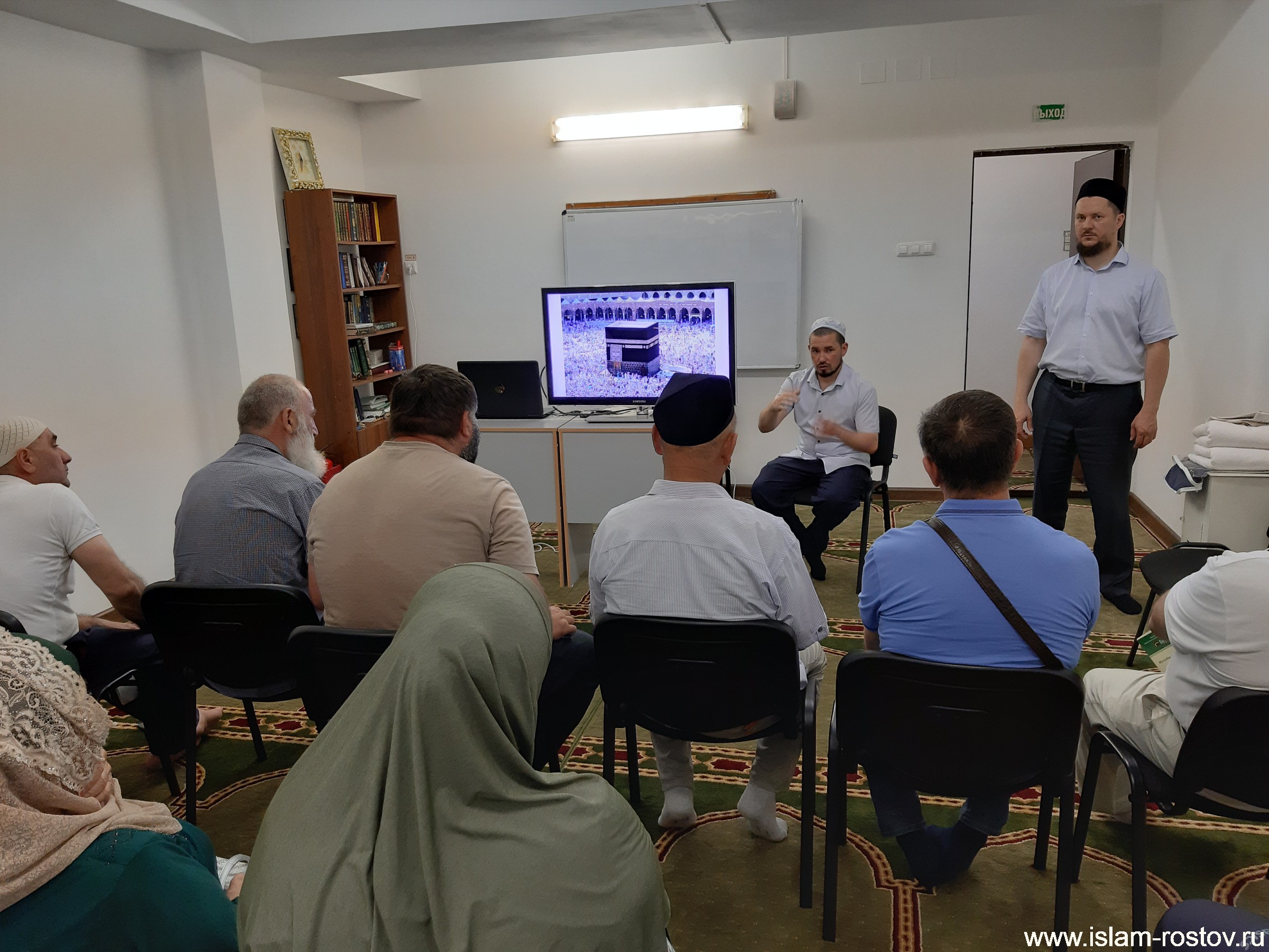 Сегодня в соборной мечети г. Ростова-на-Дону прошел обучающий семинар посвященный Хаджу в 2019г., который провели заместитель муфтия Ростовской области Мухаммед хазрат Бикмаев и имам-хатыб Ильдар хазрат Синдикаев. Семинар был проведен среди паломников, готовящихся в этом году совершить свой первый Хадж. Были затронуты самые острые темы по организации Хаджа в этом году, начиная от совершения обрядов паломничества, вопросов связанных с прохождением пограничных процедур при пересечении границ России и Королевства Саудовской Аравии, заканчивая вопросами личной гигиены, вакцинации и медицинского обслуживания. Все паломники получи комплект учебных пособий по совершению Хаджа.