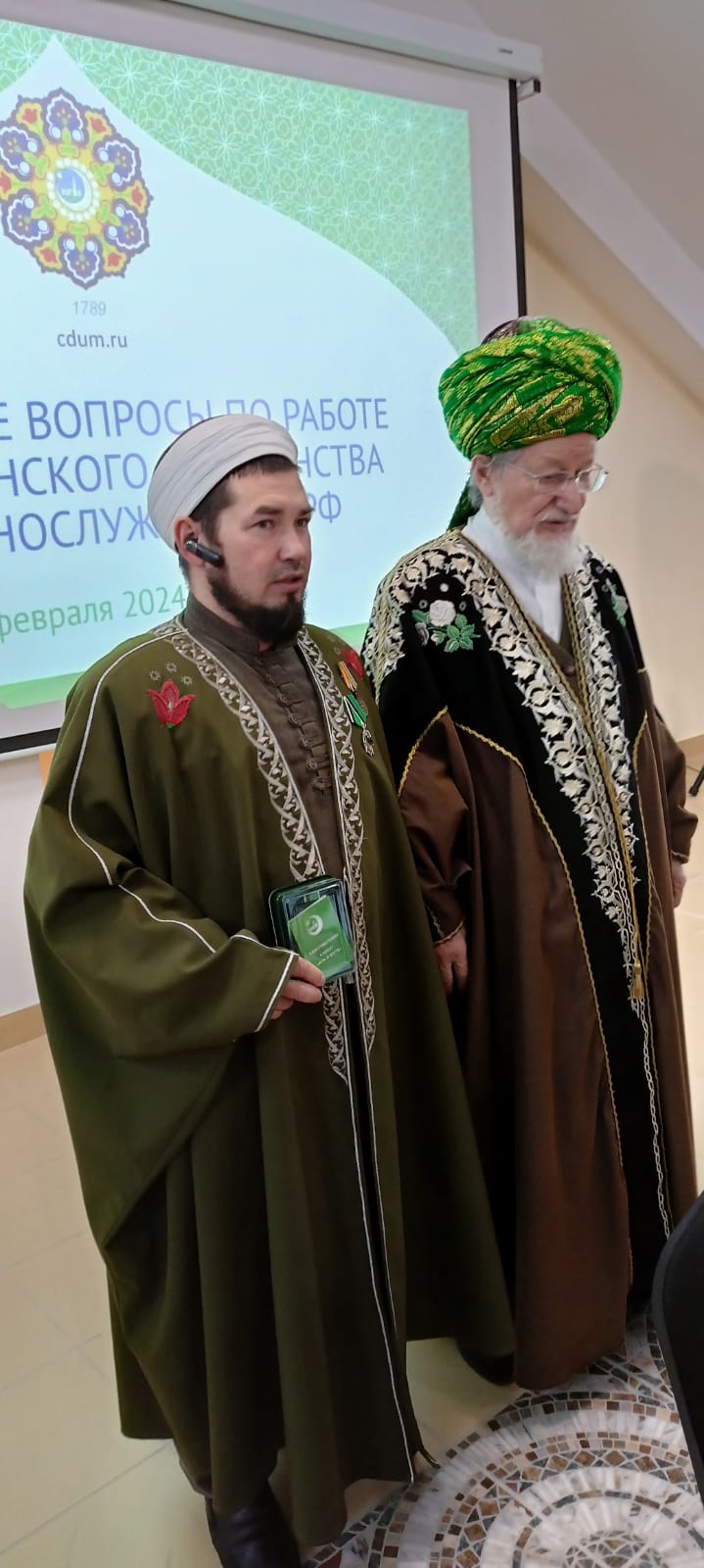 Верховный муфтий вручил награды ЦДУМ России священнослужителям. Ордена «Вера и Честь» удостоены помощник начальника Отделения по работе с верующими военнослужащими Управления по работе с личным составом Южного военного округа, имам-хатыб Ильдар Синдикаев и имам-хатыб по работе с верующими военнослужащими Юлай Юнусов.