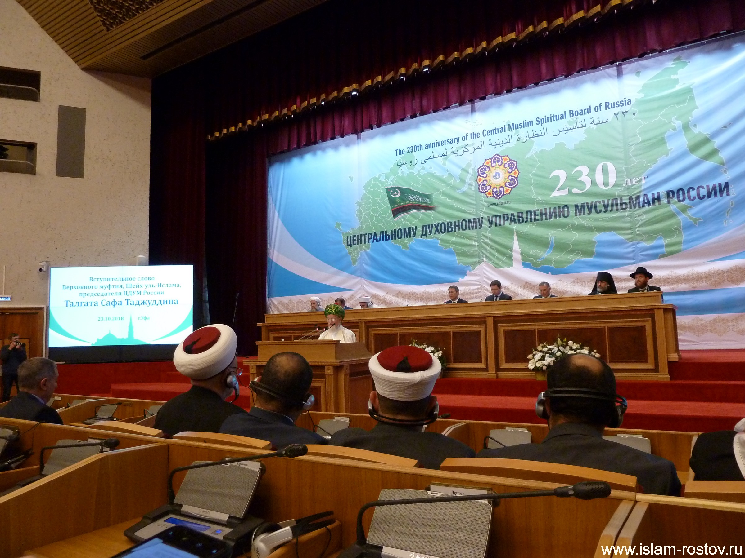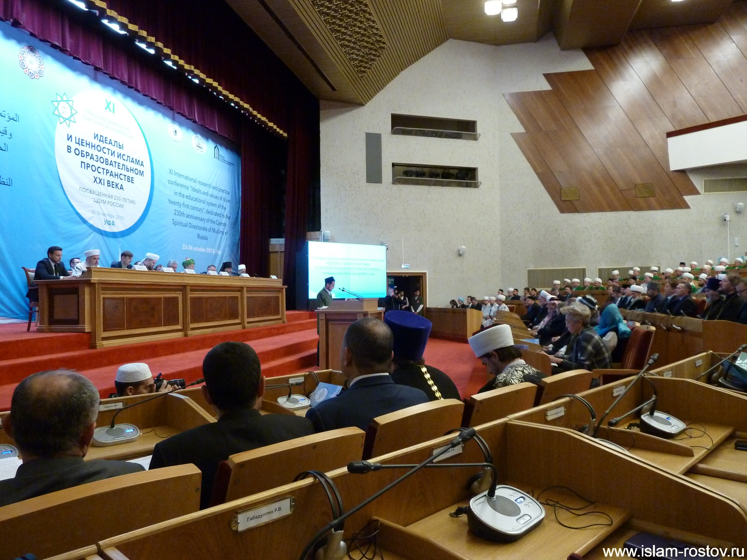 Традиционный форум исламских ученых, богословов и религиоведов в этом году посвящен славной дате – 230-летию ЦДУМ России. Принять участие в юбилее старейшего духовного управления страны и обменяться мнениями по вопросам, связанными с развитием системы мусульманского образования, в Большом зале Государственного Собрания – Курултая Республики Башкортостан собрались участники форума: руководители РДУМ, муфтии, имамы-ахунды, преподаватели РИУ ЦДУМ России и медресе, представители власти, общественных и религиозных организаций, делегаты из стран ближнего и дальнего зарубежья. От ЦДУМ Ростовской области участие в конференции приняли, председатель Центрального Духовного Управления мусульман Ростовской области имам-ахунд Бикмаев Мухаммед Джафярович и имам-хатыб Синдикаев Ильдар Карибуллаевич.
