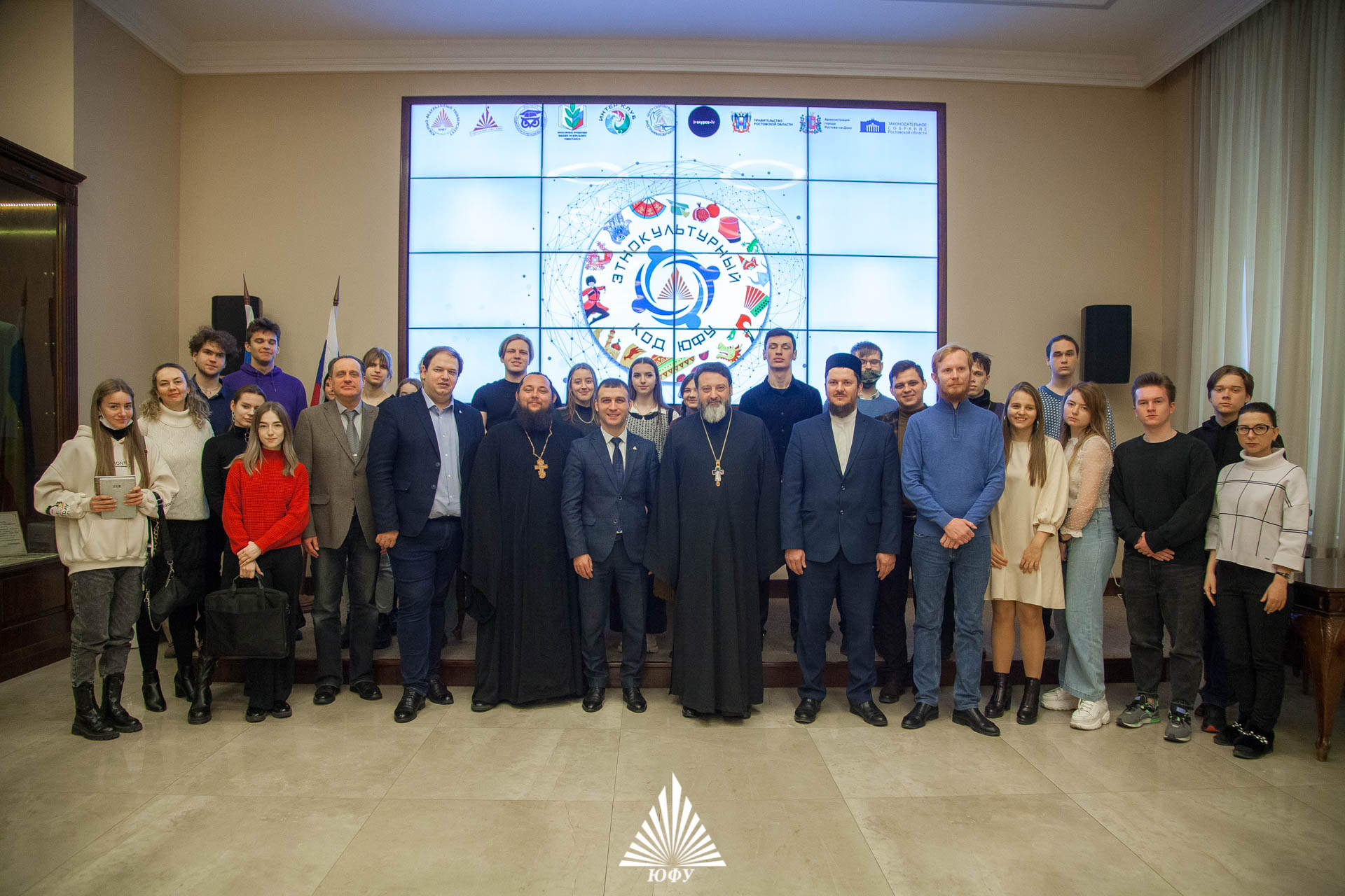 В рамках проекта, который реализуется в целях укрепления межнациональной и межконфессиональной дружбы среди молодежи Юга России с 2021 года и включает комплекс научно-практических и культурно-просветительских мероприятий, была создана серия фильмов "Вера-на-Дону", посвященных традиционным конфессиям Ростовской области. Содержание короткометражных фильмов, авторами которых выступают студенты ЮФУ, направлено на формирование комплементарной культуры межконфессиональных отношений в молодежной среде и содействие этнокультурному просвещению.