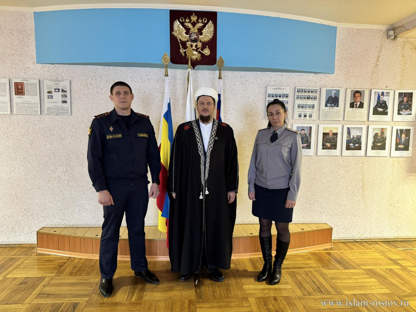Стоит отметить, что ГУФСИН России по Ростовской области длительное время взаимодействует с Центральным Духовным Управлением мусульман Ростовской области. В целях духовно-нравственного и религиозного просвещения лиц, осужденных к лишению свободы и лиц, отбывающих наказание в исправительных учреждениях региона, представители ЦДУМРО активно посещают исправительные учреждения, проводят для верующих просветительские беседы, совершают Богослужения и религиозные обряды, приобщают их к моральным и духовным ценностям, а также по мере возможности оказывают гуманитарную помощь.