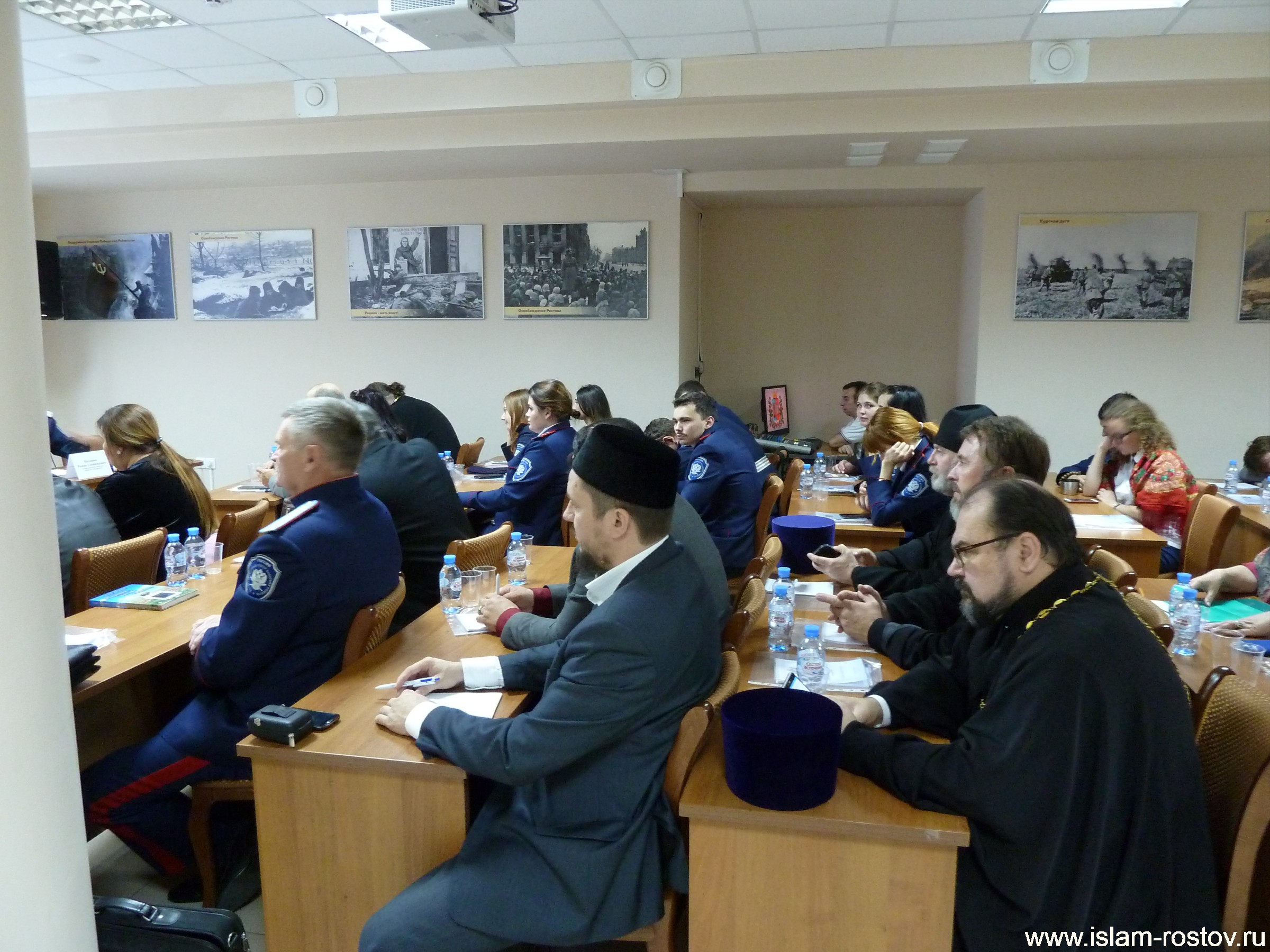По приглашению председателя комитета по межнациональным вопросам, религии и казачеству Администрации г. Ростова-на-Дону Ю.В. Аникиной, участие в круглом столе принял заместитель муфтия Ростовской области Мухаммед Бикмаев. В своем выступлении Мухаммед Бикмаев сказал, что профилактика экстремизма в молодежной среде является весьма актуальной задачей в настоящее время и последние трагические события свидетельствуют об этом. Для сохранения мира и недопущения правонарушений, в первую очередь этим необходимо заниматься родителям в семьях, воспитывая домочадцев в духе традиционных религиозных ценностей и с раннего возраста прививать уважительное отношение к людям различных национальностей и конфессий. Поскольку от человека искренне верующего, исходит только мир и безопасность.